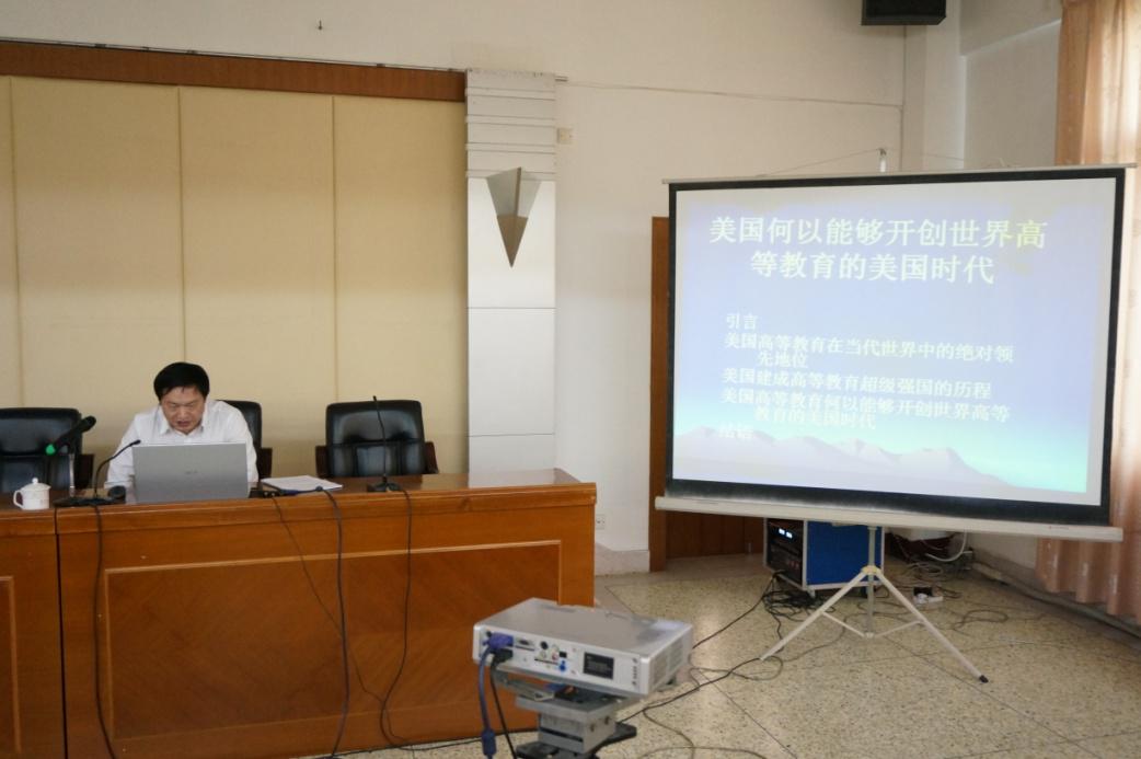2014年12月11日下午,华中科技大学高等教育研究所所长贾永堂教授应教育科学学院邀请,为全校师生在逸夫楼三楼报告厅开展主题为《美国何以能够开创世界高等教育的美国时代》的讲座。