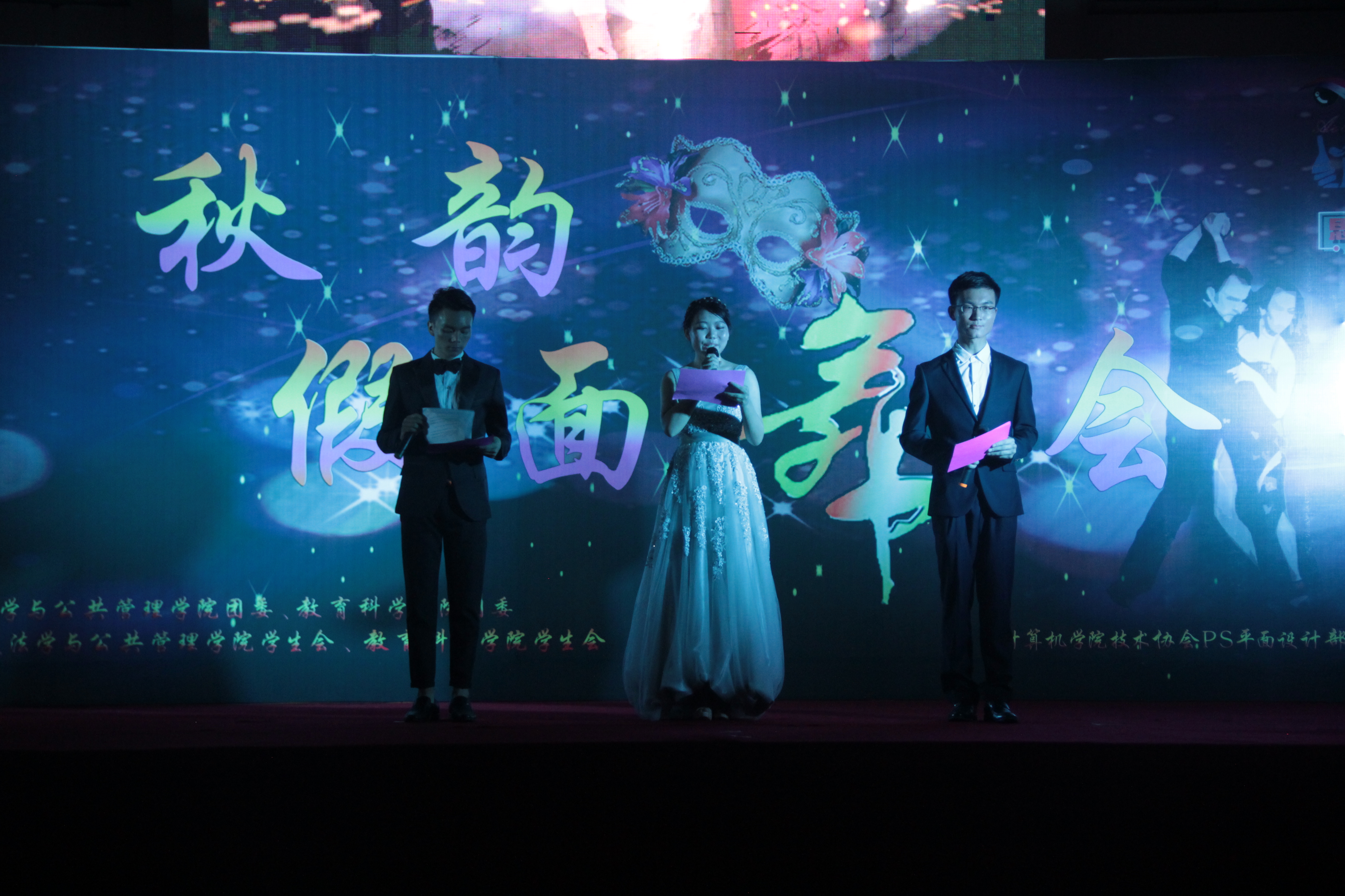 11月7日19时,由计算机学院、法学与公共管理学院、教育科学学院联合举办的“秋韵假面舞会”于达理活动中心盛大开幕。