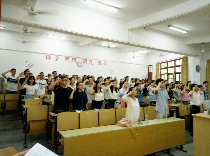 为推进“两学一做”常态化制度化,6月29日下午,教育科学学院全体教职工党员、学生党员和今年新发展的预备党员在梯教一开展“迎七一主题党日”系列活动。