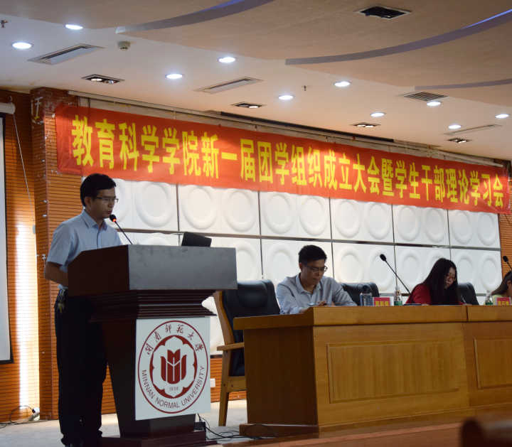 2017年10月19日下午三点,教育科学学院在逸夫图书馆五楼报告厅召开新一届团学组织成立大会暨学生干部理论学习会。