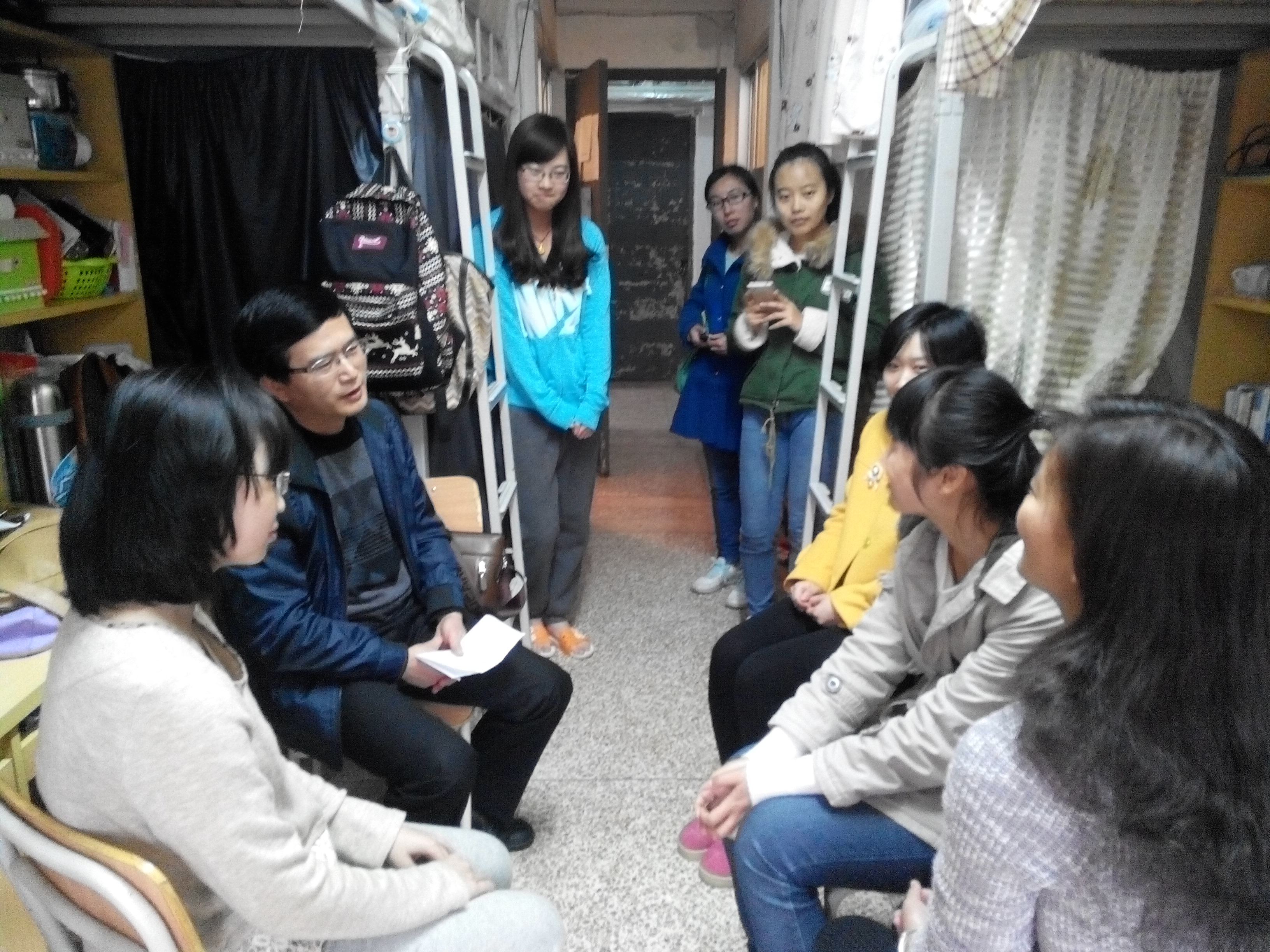 3月14日下午,教育科学学院党总支书记朱志明带领永利集团领导小组一行深入瑞京学生公寓召开学生座谈会,了解学生住宿、生活、学习等方面情况,并走访了学生宿舍,与学生亲切交谈。
