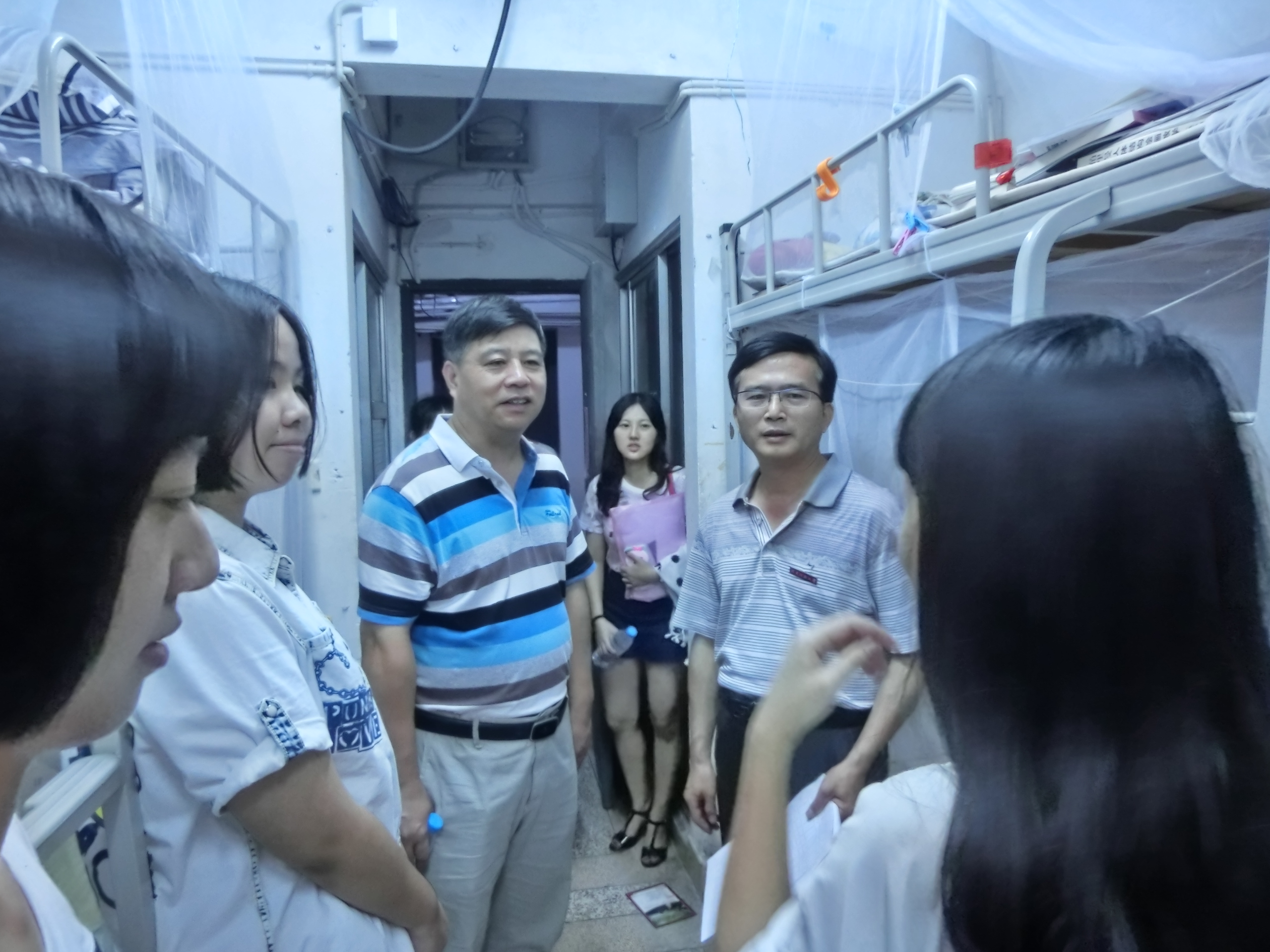迎新工作结束之后,黄清院长、朱志明书记及相关政工人员亲临新生宿舍走访慰问新生。院长、书记与新生进行了亲切的交流,与新生畅谈大学新生活,还特别关心了来自外省的新生,亲切询问了他们远道而来是否吃得习惯、住得习惯,并与同学们合照。交谈中,院长、书记耐心而细致地解答了学生的一些问题,并进行现场办公,解决了一些新生所遇到的问题。无微不至的关怀令15级的新同学十分感动,同时也缓解了他们对新环境新生活的忧虑,令他们能够更好地融入教科院,开始接下来的学习生活。