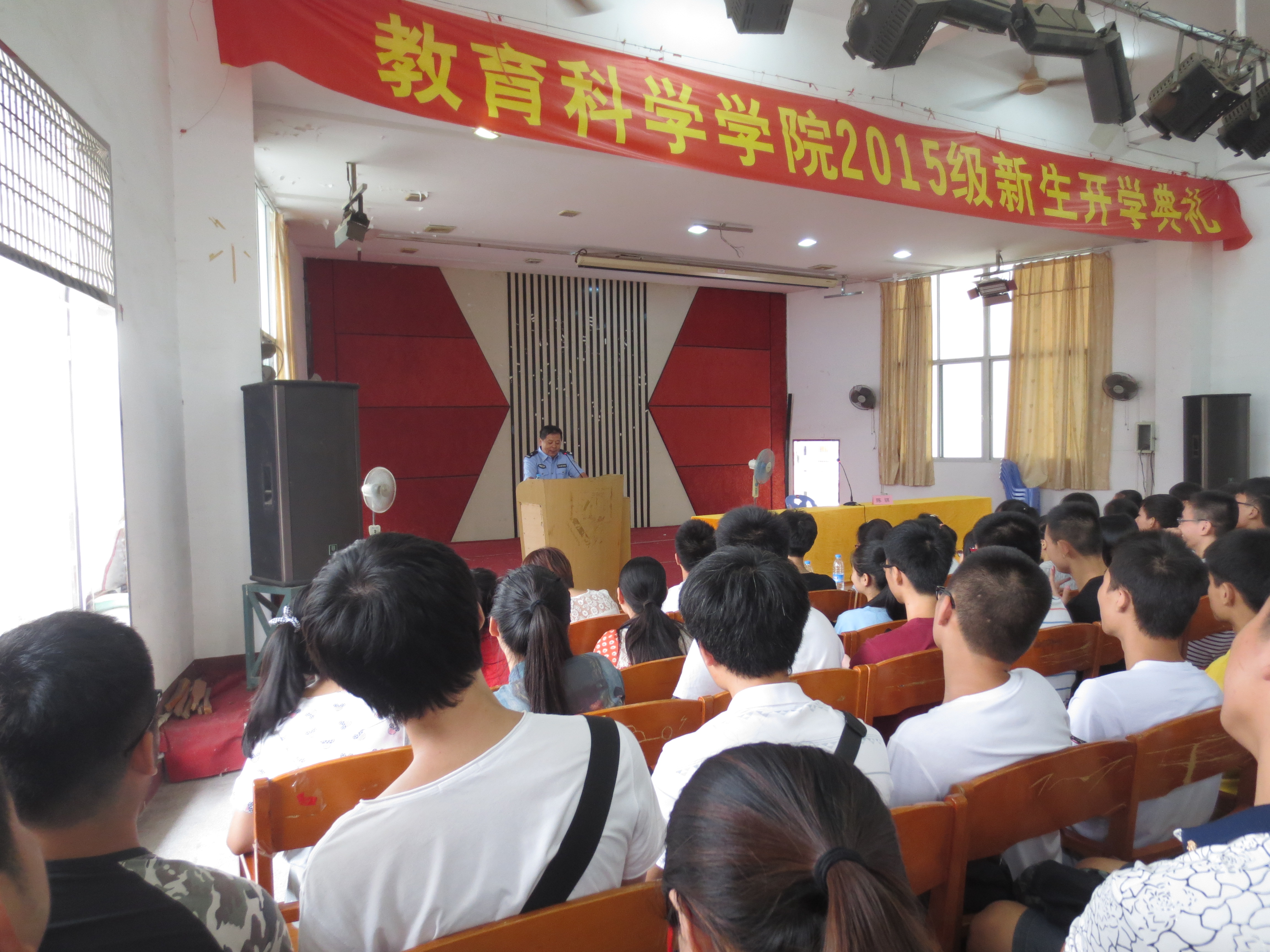 9月13日上午,教科院新生开学典礼在大梯教正式举行。黄清院长、朱志明书记、院长助理索磊老师、陈顺森老师、团委负责人陈春慧老师和15级辅导员陈佳薇老师出席了开学典礼。奏唱国歌之后,由黄清院长致辞,对新同学们融入新生活提出了几点建议,希望能够在认识到自己的专业特色的基础上,在将来的学习生活中积极发挥教科院的学院特色,谱写教科院新的明天。紧接着由在校生代表发言,对新同学们表示了热切的欢迎,以自己的亲身经历激励同学们在接下来的大学生活中努力拼搏。最后由15级新生代表发言,对同学们的大学生活提出自己的一点建议,希望大家都能不负青春,在闽南师大谱写出属于自己的最好年华。