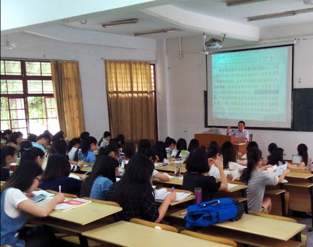 4月16日-19日,应我校广大考生和兄弟院系的邀请,教育科学学院发挥自身的专业优势,组织一批教学经验丰富、认真钻研过考题的骨干教师,分五大模块(即教育学模块、心理学模块、法律法规和师德模块、小学语文模块和小学数学模块),举办了一系列的教师招考辅导讲座。在校考生的参与热情非常之高,几乎每场讲座都座无虚席。为了抢到一个座位,有的同学甚至提前一两个小时来教室。听课学生普遍反映:系列讲座内容丰富,直击考点,重点突出,非常给力,有相见恨晚的感觉。教科院的领导表示:“急学生之所急,解学生之所困”,教科院以后每年都将根据广大考生和兄弟院系的需要,定期举办心理咨询师考试、教师资格证考试和教师招聘考试方面的培训。据悉,2015年的教师资格证考试培训也即将开始。