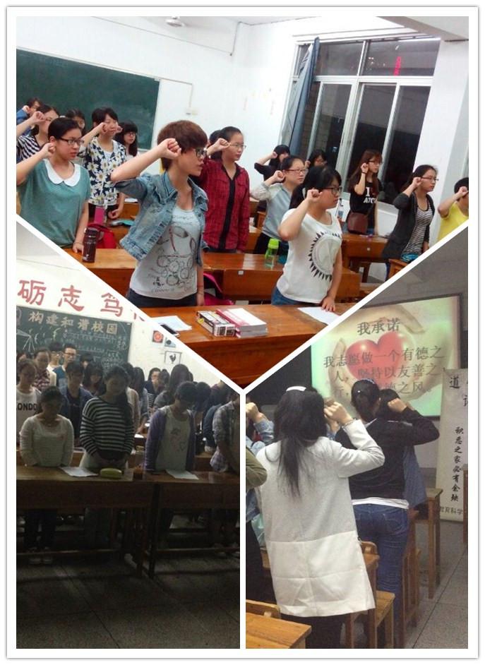 4-5月,教科院以“以友善之行,树道德之风”为主题陆续开展了班级流动道德讲堂,此次的道德讲堂以新的场地,新的形式,给大家带来耳目一新的感觉。活动以庄重的静默省心拉开序幕,之后陆续进行“唱一首歌曲;看小段话剧;诵一段经典;做一番点评;作一个承诺;送一份吉祥;向德鞠躬一堂一善事。”值得一提的是,此次一些班级采用表演话剧的形式来体现道德对于我们的重要意义,党员们也以自己的真实经历,向同学们传达了友善的力量,使同学们受益匪浅。
