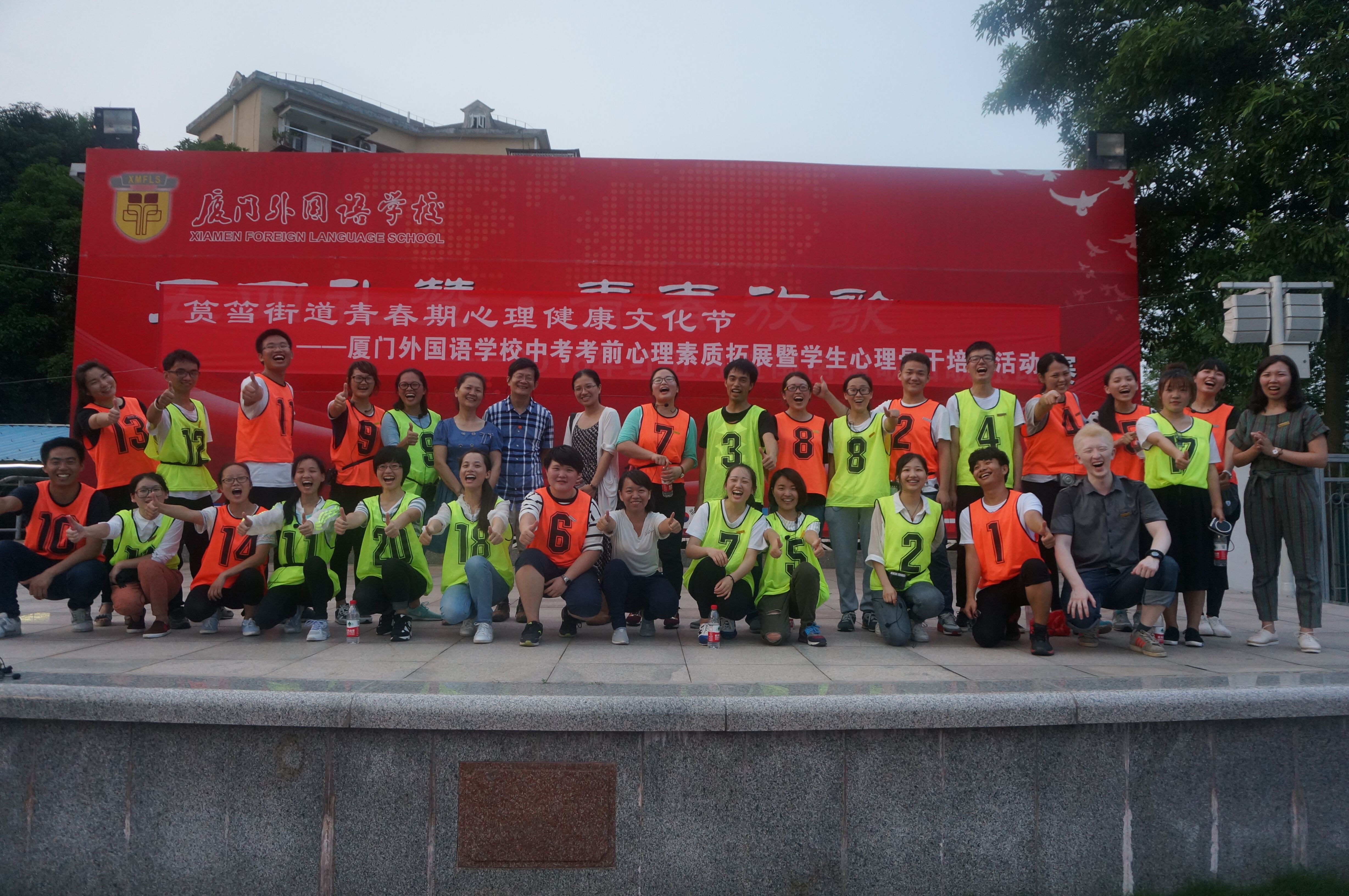 5月30日下午,yl23411永利教育科学学院心理系携手筼筜街道为厦门外国语中学初中部开展考前心理素质拓展活动,为初中学生减轻压力,从容应考。本次活动是筼筜街道青春期心理健康文化节系列活动之一,此前在厦门市松柏中学已经开展了两场素质拓展活动。