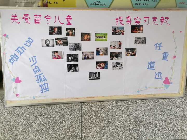 为认真落实国家在精准扶贫和扶贫扶智方面的精神和要求,教育科学学院结合学院本科生都是师范生的实际,积极推进师范生实习支教与乡村留守儿童关爱教育活动的开展。学院注重良好校园文化环境的创设,在教室,布置了以“关爱留守儿童”为主题的黑板报,在教学楼,展出了“投身实习支教”的版块,增进学生对实习支教的理解,提升学生的参与热情,调动学生的积极性和能动性,鼓励学生响应国家号召、支持乡村教育,从而为实习支教活动的顺利开展打下坚实基础。