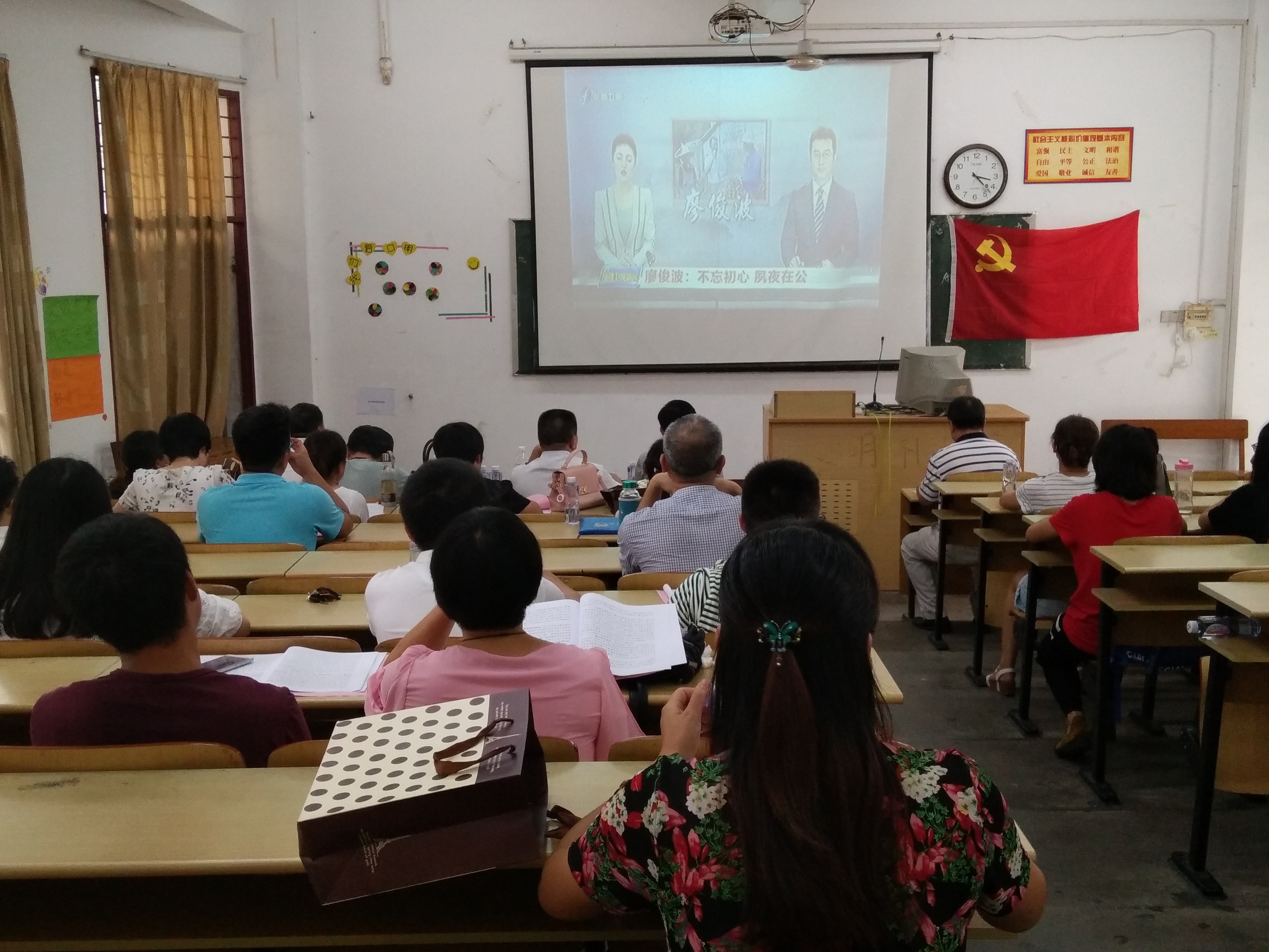 随后,全体党员观看了廖俊波同志“不忘初心,夙夜在公”视频,追思廖俊波同志一心为民的情怀,背石上山的干劲,忘我工作的敬业精神。学院党委书记朱志明同志会上传达了学校党委《2017年基层党建工作》会议精神,通报学校党委对教科院全面从严治党情况深度检查的情况,并提出整改意见。
