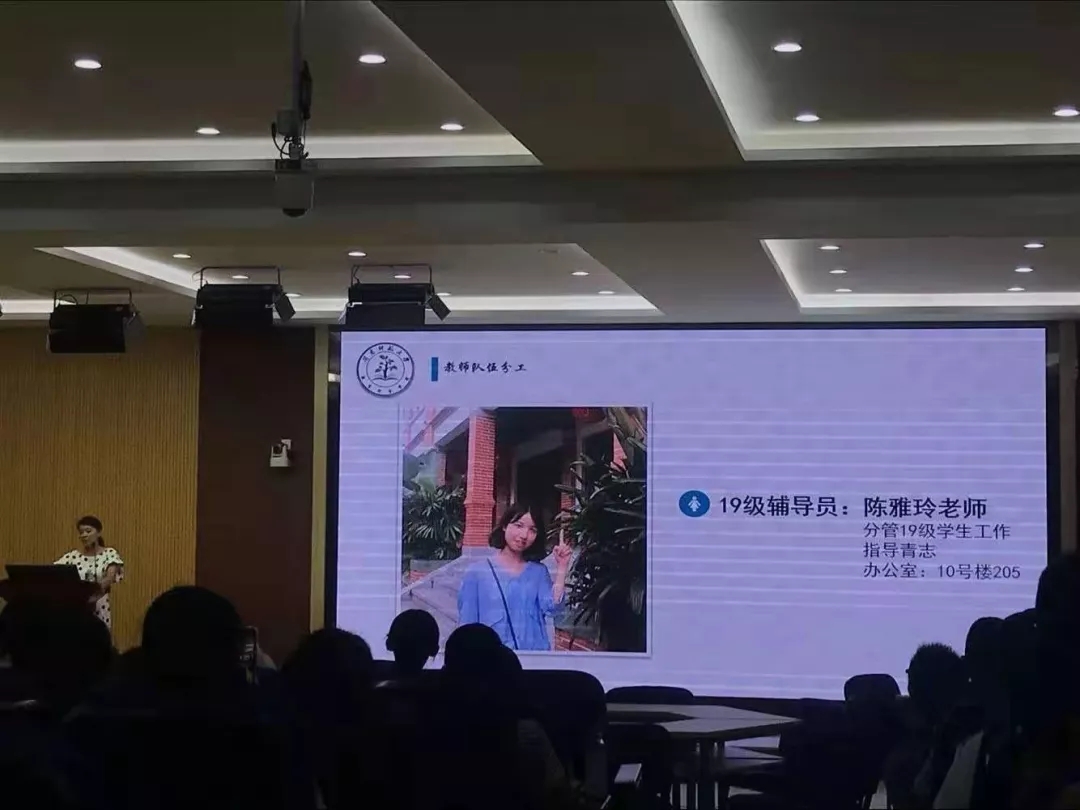 之后,19级辅导员陈雅玲老师和新生开展主题班会,她首先欢迎新同学加入教科院,并向各位同学介绍了教科院的总体情况和各专业情况。同时也向同学们强调了一系列关于学习和生活上的问题,希望同学们遵守校规校纪,端正思想态度,怀抱初心,砥砺前行。