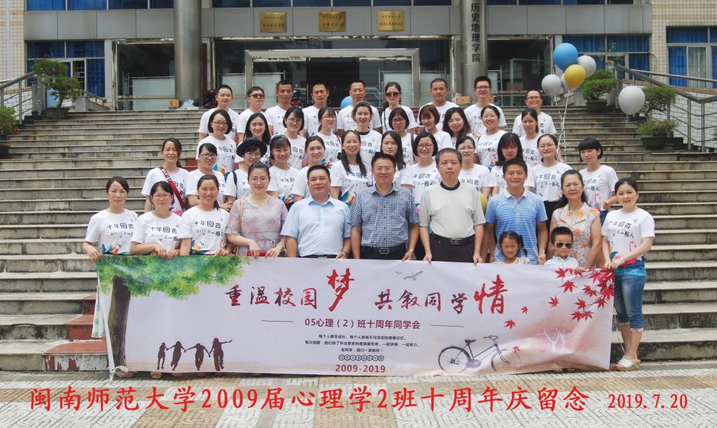 7月12日至7月20日,我院2005级教技班、小教2班、心理1班、心理2班和2009级教技班共5个班级,约120名校友返校,开展十周年同学会活动。我院院长陈顺森教授,党委副书记杨君玉老师,专任老师以及时任辅导员等参加了部分活动。