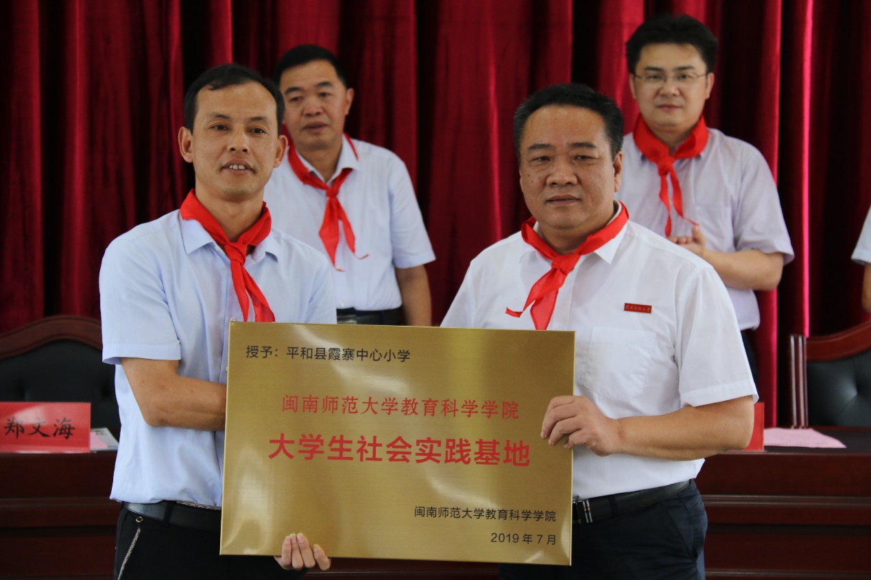 7月6日上午,我院与平和霞寨中心小学“大学生社会实践基地”共建签约授牌仪式暨2019“阅享童心,携手童行”主题夏令营开营仪式顺利举行,教科院党委书记郑文海教授、副书记杨君玉老师、yl23411永利基础教育工作办副主任朱志成副教授、平和县人民政府教育督导室曾长辉副主任、霞寨镇人民政府曾剑光镇长、霞寨镇林文平宣委、霞寨中心小学校长黄国栋及该校领导班子出席此次仪式,我院“阅享童心,携手童行”暑期社会实践队全体成员和霞寨中心小学的60名学生参与了此次仪式。