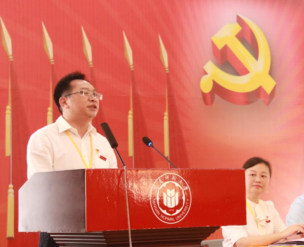这次大会,是在我院改革发展进入关键阶段召开的一次十分重要的大会。大会的主题是:高举中国特色社会主义伟大旗帜,以习近平新时代中国特色社会主义思想为指导,全面深入贯彻党的十九大和全国教育大会精神,坚持全面从严治党,落实立德树人根本任务,动员全院各级党组织、党员同志和师生群众,为培养实践创新型的卓越教师队伍,继续为建设创新型国家、促进区域经济社会发展和新闽师建设做出积极贡献。