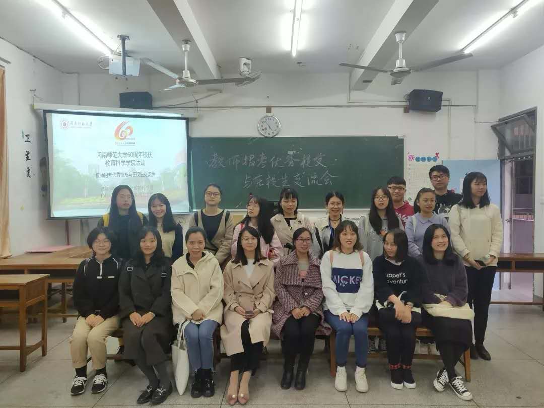 桃李盈门,同庆甲子盛典;芝兰满室,共襄闽师辉煌。为庆祝我校60周年校庆,教育科学学院于12月8日举办了师生茶话会、优秀校友事迹报告会、考研优秀校友与在校生交流会、教师招考优秀校友与在校生交流会院系系列活动。