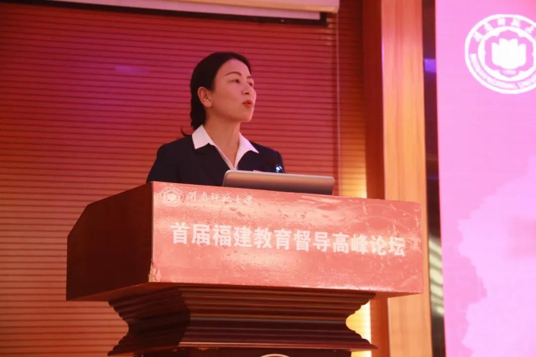 国家督学、福建省教育厅副厅长、福建省人民政府教育督导办公室主任李迅作题为《立足新时代 再创新辉煌》的主旨报告,李迅副厅长回顾了福建省教育督导的历史,重点介绍了当前福建省教育督导的基本情况,特别是在政府督导(督政)、学校督导(督学)、评估监测等方面的情况。他指出,党的十九届五中全会第一次明确提出“建设高质量教育体系”,这是新时代教育发展的新主题、新方向、新目标、新任务。福建省教育督导将进一步抓实“对市督导”,促进督政体系健全优化;拓展对校督导范围,延伸督学工作抓手;围绕教育评价新导向,推动评估监测体系改革;立足提质增效,创新教育督导工作方式;全面履行职责,推动教育督导“长牙齿”;密切交流协作,完善教育督导智库建设。