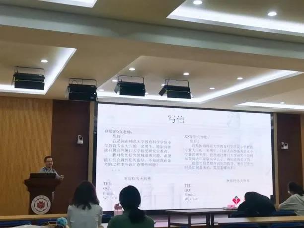 12月13日下午,教科院组织2018级同学在梯教一举办考研专题讲座,主讲人邹老师重点阐述了考研流程与考研分区、院校专业的选择、自主划线单位、统考专业、专业硕士与学术硕士的区别、全日制与非全日制的差异等问题,指导同学们掌握正确的备考方法,进一步加深对考研的认识和了解。