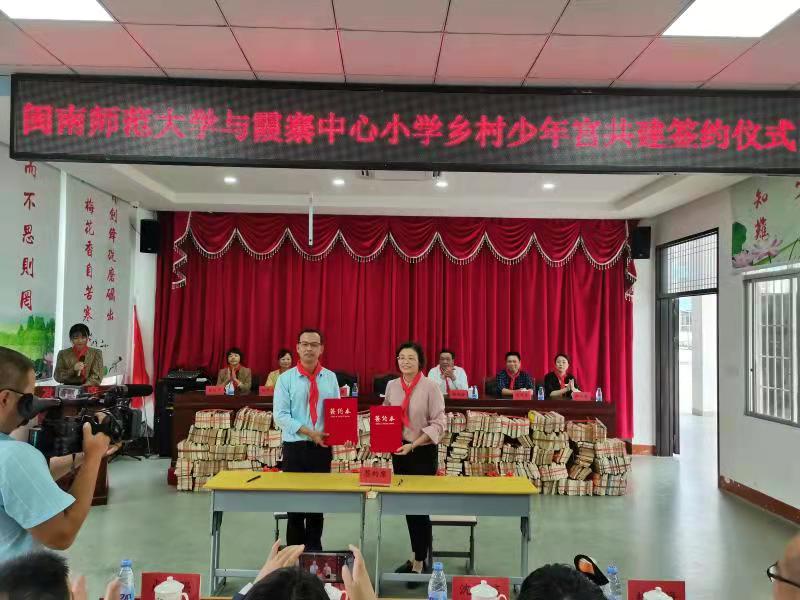 11月4日下午,yl23411永利与平和霞寨中心小学结对共建乡村学校少年宫签约仪式在平和举行。闽南师大党委宣传部、图书馆、教育科学学院及平和霞寨中心小学相关人员参加签约仪式。