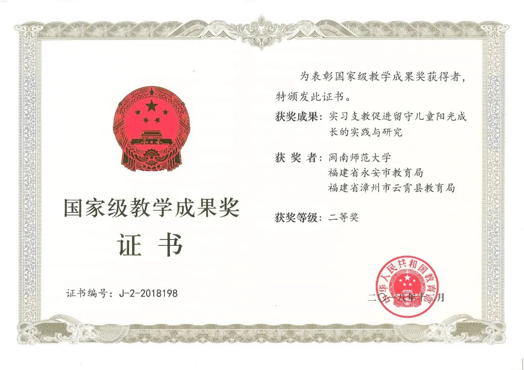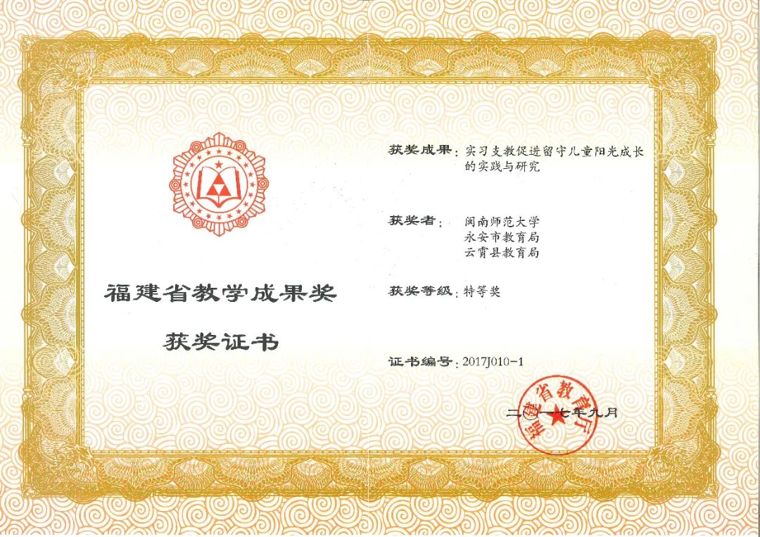 ▲《实习支教促进留守儿童阳光成长的实践与研究》荣获福建省教学成果特等奖
