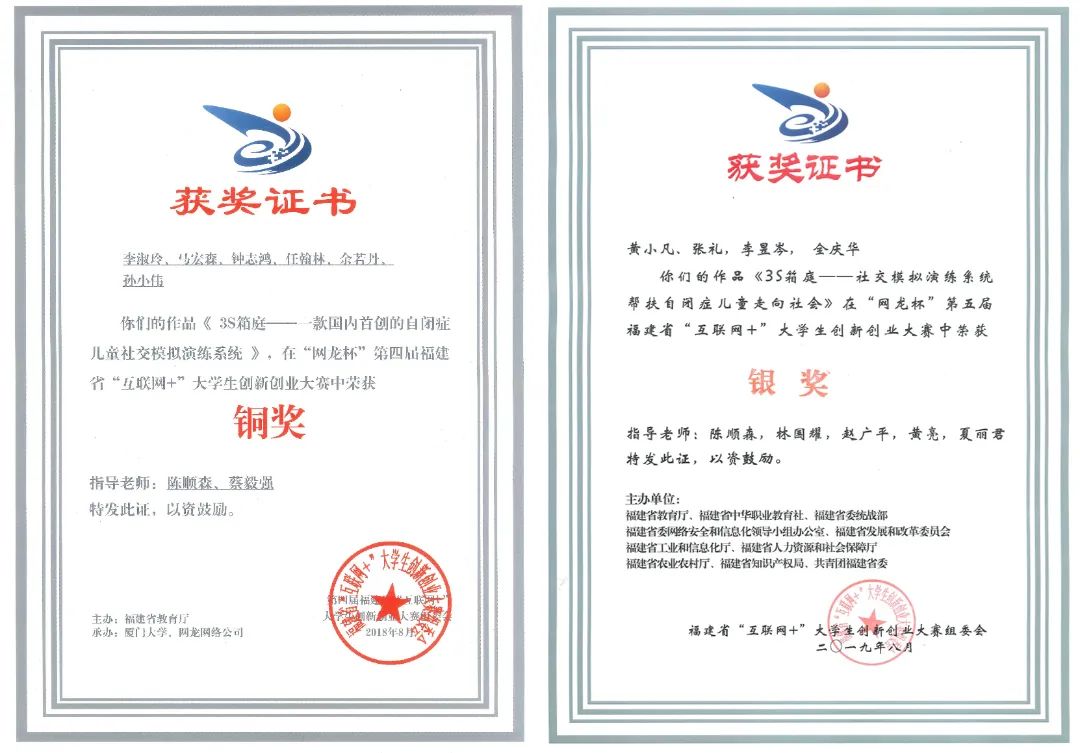 ▲在第四届、第五届福建省“互联网+”大学生创新创业大赛中荣获铜奖、银奖