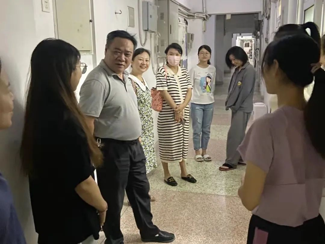 金秋送爽,喜迎新生。为进一步关心学生成长,及时了解新生思想动态,引导帮助他们尽快融入适应大学生活,做好思想引领,同时抓好疫情防控常态化工作,9月20日晚我院党委书记郑文海教授、党委副书记杨君玉老师及新生辅导员夏丽君老师、陈钰煌老师走访新生宿舍,看望2022级新生。