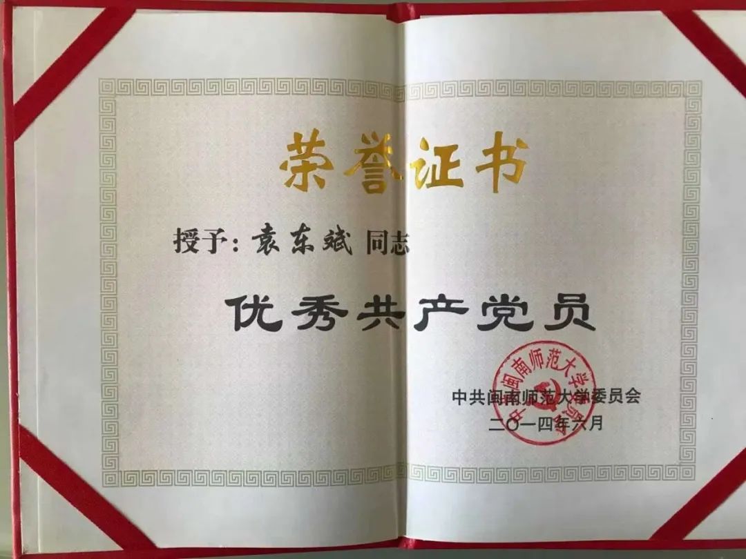 袁东斌老师在日常工作中坚持加强政治学习,不断提高政治素质,坚定正确的政治方向,从思想上、认识上、理论上、行动上保持了与党中央的一致性。袁老师担任教科院党委委员,在工作学习中增强“四个意识”,坚定“四个自信”,践行“两个维护”, 配合院党委做好各项工作,2014年被评为校“优秀共产党员”。