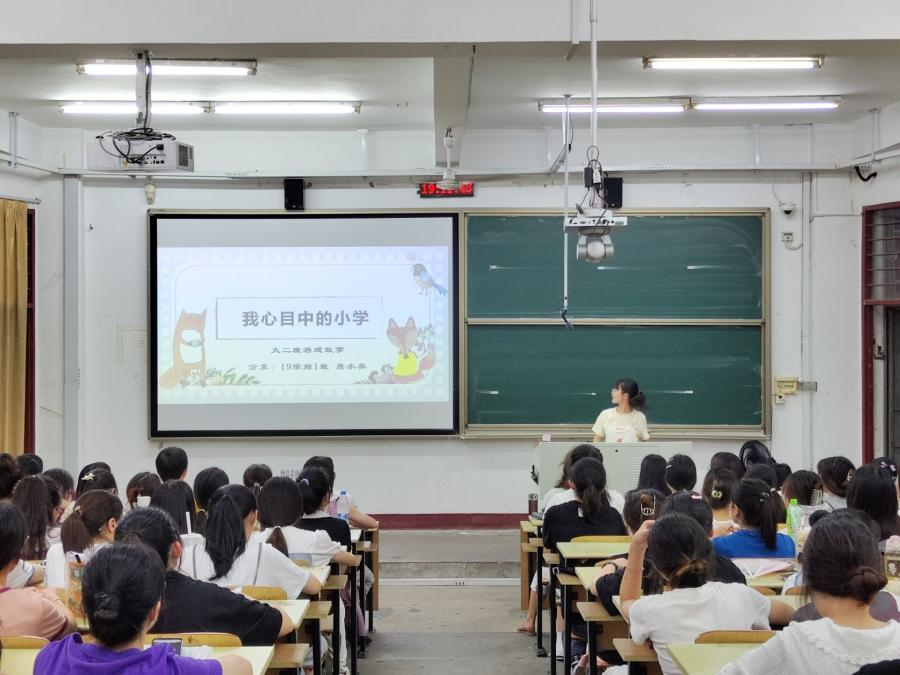 为深入总结教育实践工作,分享实习经验,展现我院学前教育专业学子实习风采,6月30日晚我院学前教育系在梯教一开展了2019级学前教育专业实习总结汇报会。副院长黄亮副教授、学前教育系主任李云淑教授和全系教师以及2019级、2020级学前教育专业同学参与本次会议,会议由学前教育系副主任魏蕾老师主持。