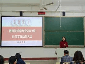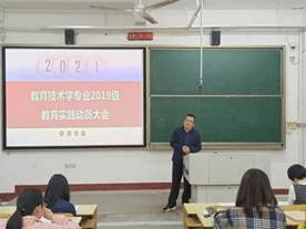 教育实践环节由见习、实习、教师职业技能考核测试及研习四部分组成,是贯彻理论联系实际,达成培养目标、要求的一个重要环节。学院一直以来高度重视教育实践工作。黄亮副院长首先对此次教育实践动员大会作了热情洋溢的致辞,对教育技术系前期教育实践准备工作的给予了充分的肯定和认可。他希望2019级的同学们能够以饱满的热情、积极主动的态度投入到教育实践工作中,通过本次教育实践活动确实提高自身的教育教学等各方面的能力。