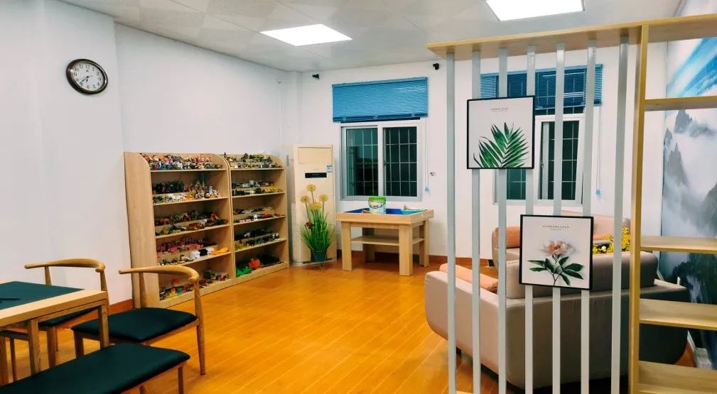 在教科院10号楼院办的一楼,有这样一间温馨的心灵驿站,暖色的背景布置、琳琅满目的小玩偶、专业的箱庭沙盘、舒适的布艺沙发,这里是学院心理辅导站。