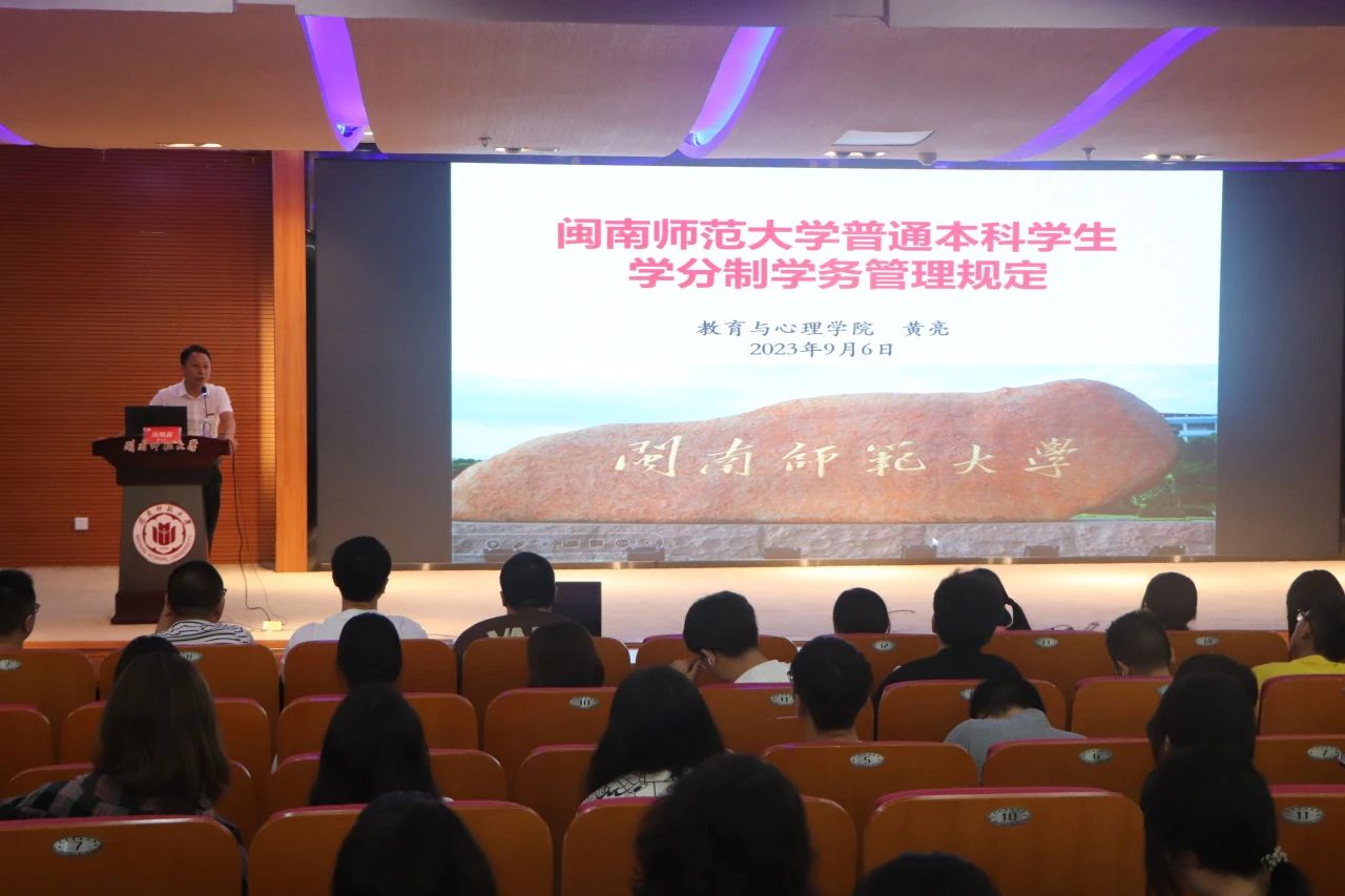 副院长黄亮副教授带领新生详细解读了我校本科生学分制学务管理规定,重点介绍了学籍认定、选课、补考与重修、转专业、考勤与考试等规定具体实施办法。黄副院长希望2023级新生们能尽快适应新角色的转变,抓好学习主业,练就过硬本领。