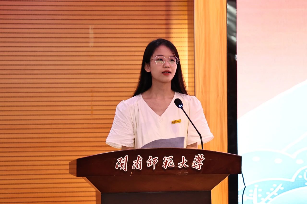 2021级小学教育专业黄凌翔同学作为在校生代表在典礼上作题为《沐教心之光,燃青春底色》的发言;2023届心理学本科毕业生、2023级应用心理专业田琴同学作为研究生新生代表发言。