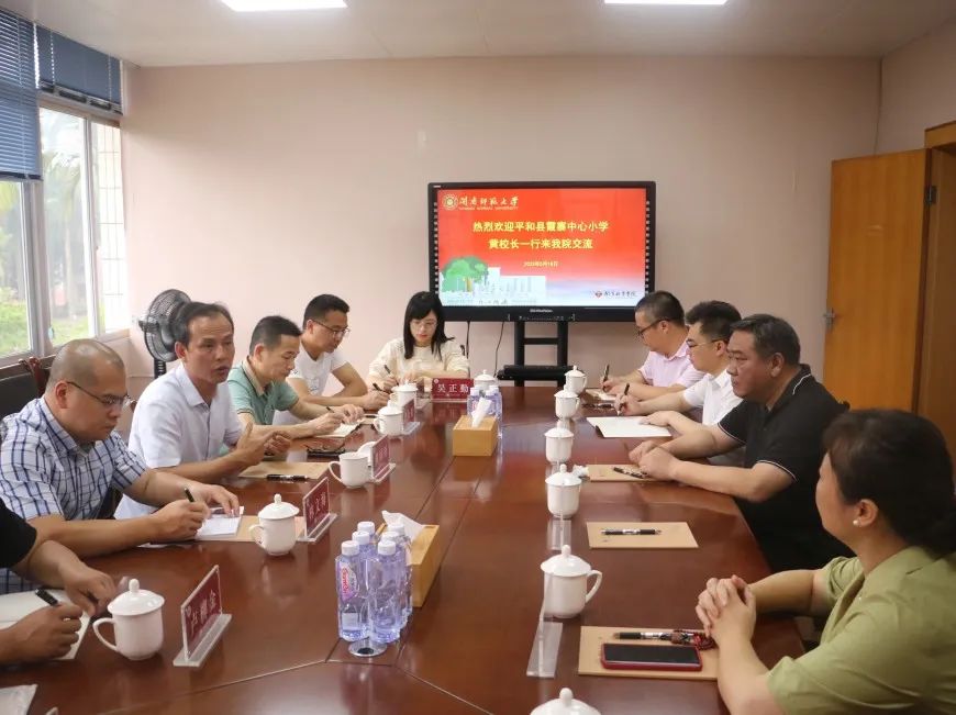 5月18日,平和县霞寨中心小学黄国栋校长一行赴我院走访交流,院党委书记郑文海、党委副书记杨君玉参加座谈。