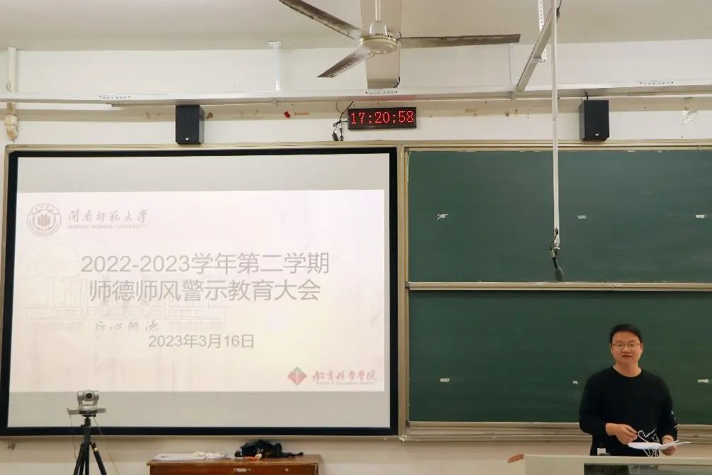 理论学习后,学院召开师德师风警示教育大会。院党委组织员唐福灯老师在会上宣读了教育部印发的《教育部公开曝光第十批7起违反教师职业行为十项准则典型案例》,引导全院教职工以案为鉴,以案明纪,以新时代“四有”好老师的标准引领育人方向,筑牢师德师风底线和防线,不忘教育初心,牢记育人使命,努力践行为党育人,为国育才的光荣使命。