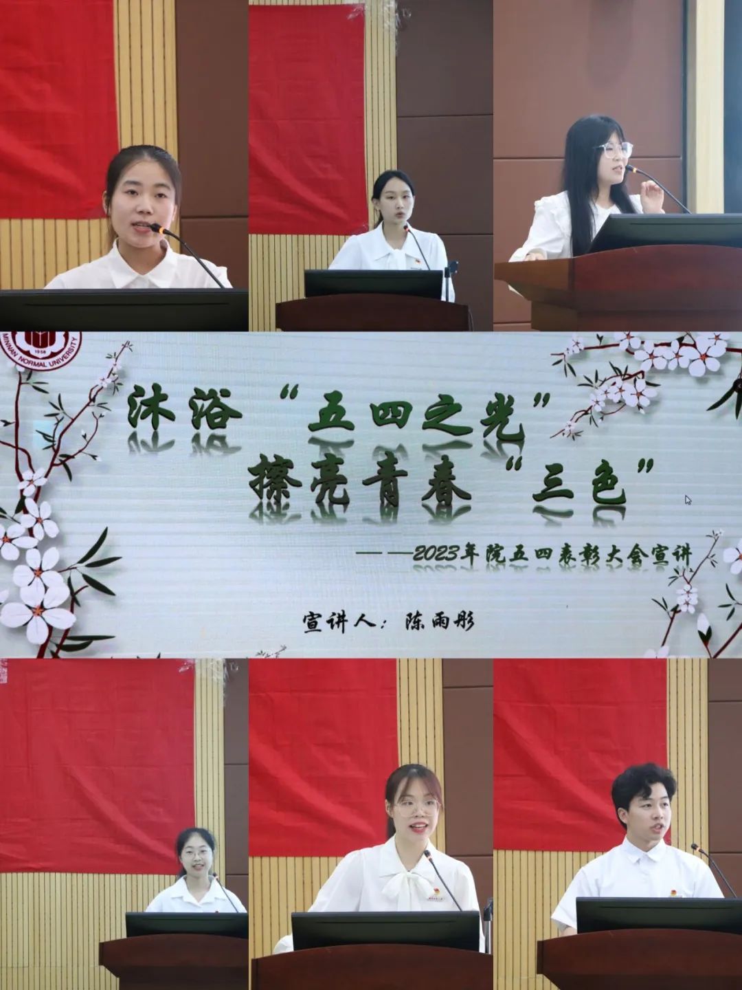 表彰大会后,学院团委组织优秀大学生先进事迹宣讲会。考研之星代表傅静妍、学科竞赛代表李洋榕、国家励志奖学金获奖者代表郑佳薪等七位获奖代表依次进行个人事迹宣讲。作为新时代的青年奋斗者,他们讲述了自身潜心求学、志愿奉献、体育竞技、科研攻关等方面的动人青春故事汇,有效起到了弘扬正能量,提振精气神的示范引领作用。他们将小我融入大我,用奋斗擦亮青春底色,让“五四”精神在新时代延续传承,熠熠生辉。