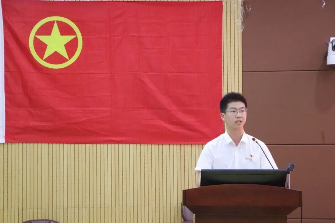 2022年度校青年突击手冯旭腾同学发言。他表示,新时代的教科青年当以奋斗致敬青春,以实干勇挑重担,以匠心砥砺初心,行走书山、泛舟学海,用昂扬的斗志奋勇向前,以万山无阻之势奔涌奋进,当好新时代的赶考人和答卷人,执青春之笔绘就青春画卷,在全面建设社会主义现代化国家的火热实践中绽放绚丽之花。
