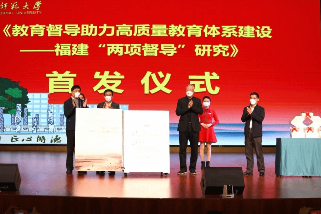 ▲林和平、吴彬镪、李迅、黄建顺共同为《教育督导助力县域高质量教育体系建设——福建省“两项督导”研究》新书首发揭幕