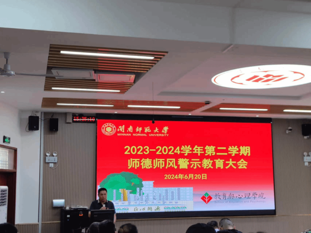 为推动党纪学习教育走深走实,进一步加强对广大教职工的警示提醒和严管厚爱,深化师德师风建设,营造气正风清的教育环境,6月20日,我院于东门梯一召开2023-2024学年第二学期师德师风警示教育大会,全体教职工参加了本次会议。