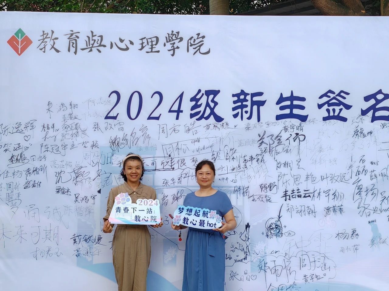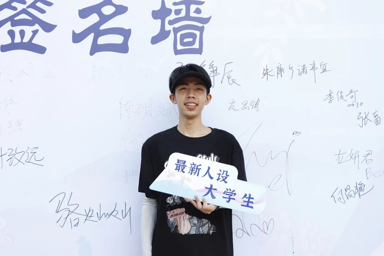 签名墙前 打卡牌旁
