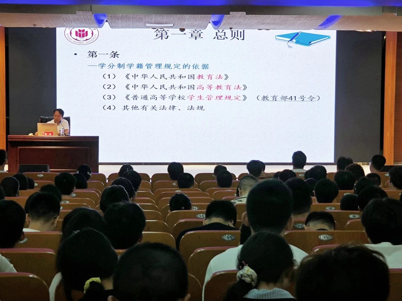 9月9日下午,院党委委员、副院长黄亮副教授带领2024级新生详细解读了《yl23411永利学分制学务管理手册》总则。黄副院长针对学籍认定、选课、补考与重修、转专业、考勤与考试等规定进行具体介绍,还分享了自己对大学学习的建议,希望2024级新生们能尽快适应新角色,提升学识,增长才干,为未来职业生涯夯实基础。