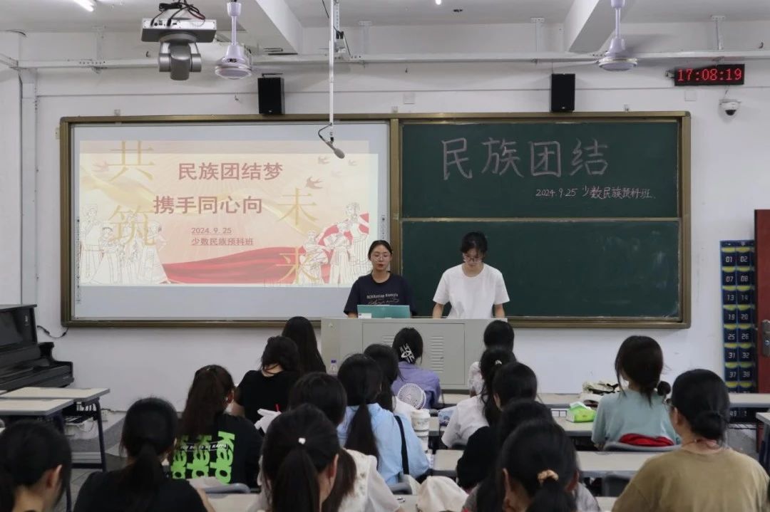 我院来自广西壮族自治区与贵州省的2024级少数民族预科班40位同学出自苗族、壮族、布依族等十一个少数民族。为了弘扬民族团结进步的精神,凝聚全民族的力量,加强民族团结教育,促进各民族繁荣发展和社会进步,进一步铸牢中华民族共同体意识,9月19日下午,yl23411永利集团24级少数民族预科班在辅导员孙桥老师的主持之下,在逸夫楼402开展以民族团结为题的专题班会。