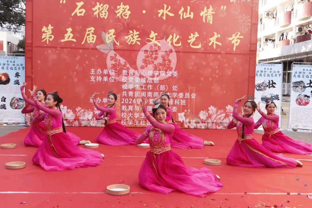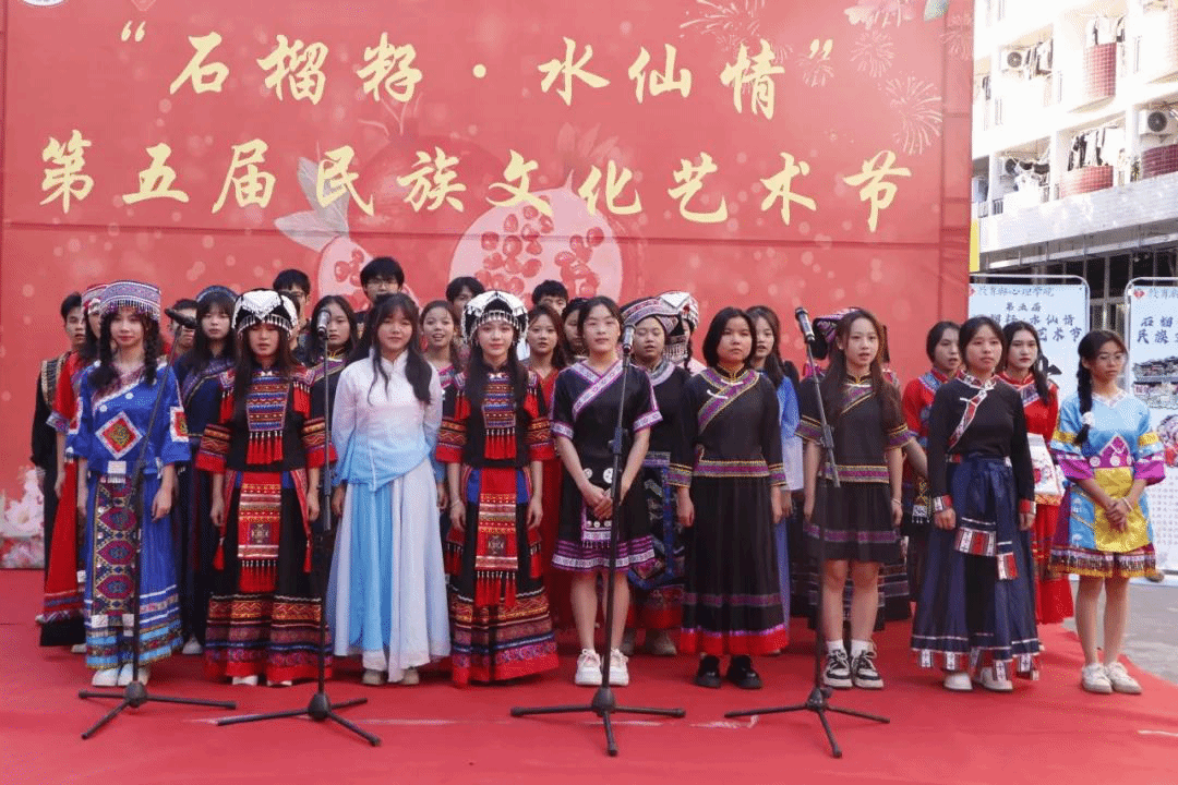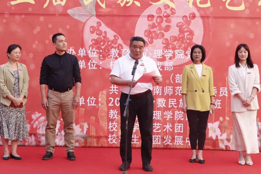 在瑞京学生公寓喷泉广场前举行的“石榴籽·水仙情”第五届民族文化节文艺汇演,院党委书记郑文海发表讲话。郑书记指出,高校是促进民族团结进步的重要纽带,是铸牢中华民族共同体意识思想基础的重要阵地,民族文化节走进瑞京学生社区,是我院把学生社区打造成“三全育人”新阵地的重要举措。希望同学们在水仙花开的yl23411永利热土中,自觉铸牢中华民族共同体意识,像石榴籽一样紧紧抱在一起,笃志爱国,砥砺奋进,为实现中华民族伟大复兴而奋斗!