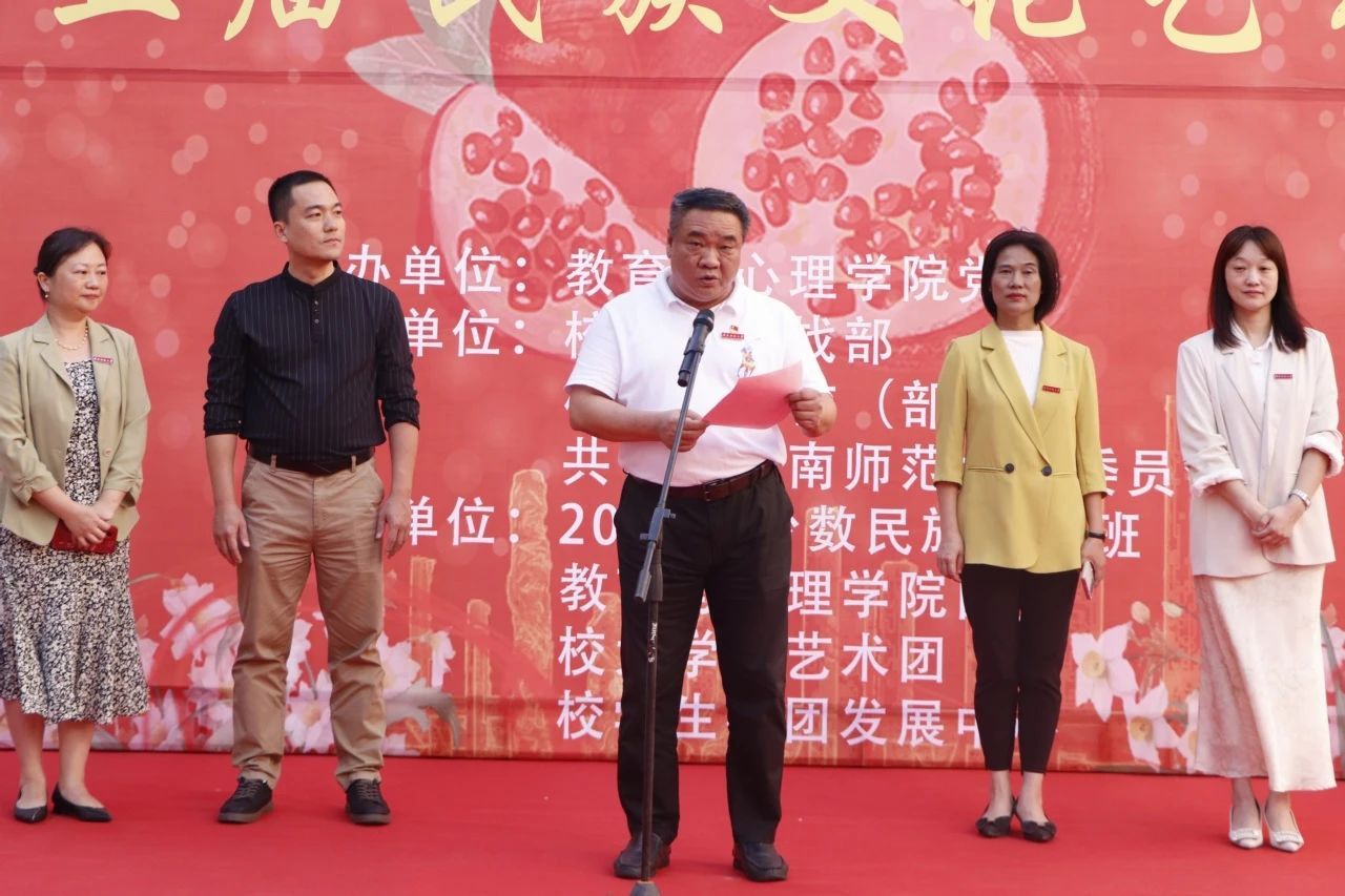 揭牌仪式后,在瑞京学生公寓喷泉广场前举行“石榴籽·水仙情”第五届民族文化节文艺汇演,院党委书记郑文海发表讲话。