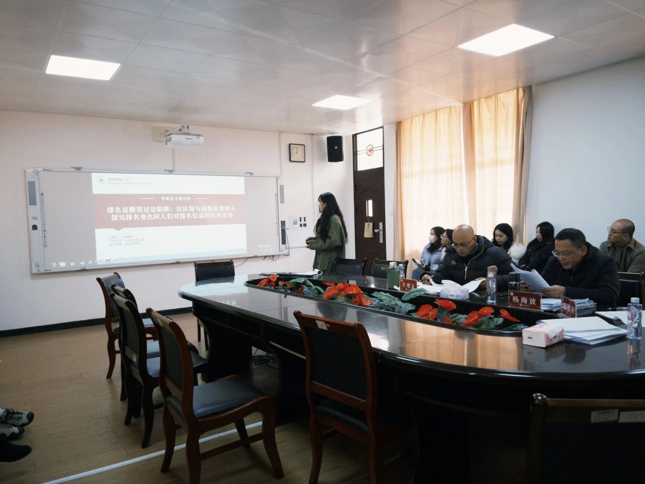 预答辩会上,每位研究生从选题背景及意义、文献综述、理论依据、论文主要内容、研究发现等方面向答辩专家进行了汇报。预答辩专家秉持着严谨、公正、专业的态度开展提问和点评,从论文规范、思路框架、研究方法等多个维度综合评价,激励着研究生们在科研过程中不断创新,追求更高质量的研究成果。