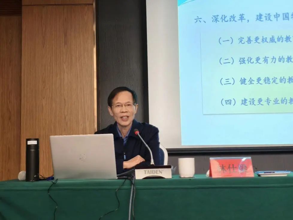 林仕梁作了题为《加强教育督导基础研究,推动教育督导制度建设》的专题报告。他指出,建国以来,教育督导见证并参与了各项教育改革,在不断强化自身制度建设的同时,也为推动教育事业发展发挥了不可替代的作用。特别是党的十八大以来,习近平总书记高度重视教育工作,提出了一系列新理念、新思想、新观点,新时代转折关键期,为教育督导如何推进教育强国建设提供了根本遵循,指明了发展方向。他提出教育督导要牢记初心使命,深刻理解教育督导内涵,准确把握教育督导基本属性,明确法定性,强调监督性,突出专业性。要聚焦教育综合改革重点和中国特色社会主义教育督导制度建设,在完善更权威的教育督导法规、强化更有力的教育督导职能、健全更稳定的教育督导机构、建设更专业的教育督导队伍上下功夫。