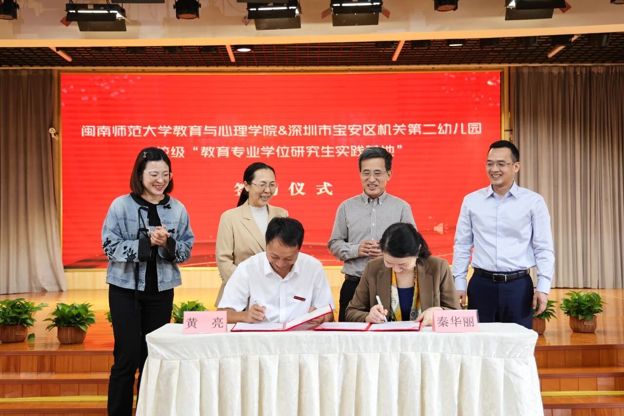 为深化专业学位研究生实践创新能力的培养,推动产教融合育人模式的落地实施,并积极响应《关于加快新时代研究生教育改革发展的意见》等相关文件要求,11月12日,我院与深圳市宝安区机关第二幼儿园隆重举行学校“教育专业学位研究生实践基地”揭牌仪式。实践基地签约揭牌仪式在宝安区机关第二幼儿园总园正式举行。宝安区教育局四级调研员温福华、宝安区幼儿教育管理中心主任李新华等领导应邀出席,与园方管理层、教研员及闽南师大研究生代表共同见证这一重要时刻。秦华丽总园长对宝安区教育局和我院领导的到来致以热烈的欢迎和诚挚的感谢。