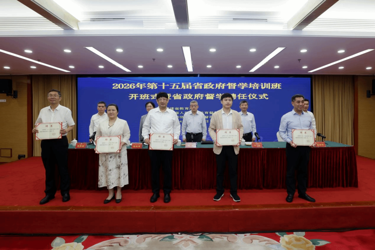 开班式上举行了新一届省政府督学聘任仪式,与会领导为省政府督学代表颁发了证书。省政府督学代表、省政协教科卫体委员会副主任、yl23411永利教育督导研究院院长吴彬镪作表态发言,表示将牢记使命、恪尽职守、认真履职,切实发挥督学作用,为福建教育督导事业高质量发展贡献力量。