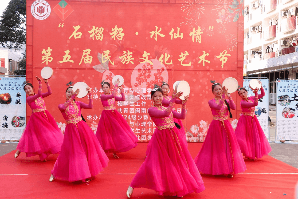揭牌仪式后,在瑞京学生公寓喷泉广场前举行了“石榴籽·水仙情”第五届民族文化节文艺汇演。文艺汇演以诗朗诵《璀璨民族》拉开序幕。维吾尔族舞蹈《绽放》和民族舞串烧以轻盈飘逸的舞姿让观众感受到不同民族的特色文化。歌曲《我爱你中国》和《有我》展现出青年学子对祖国的美好祝福和挺膺担当的姿态。