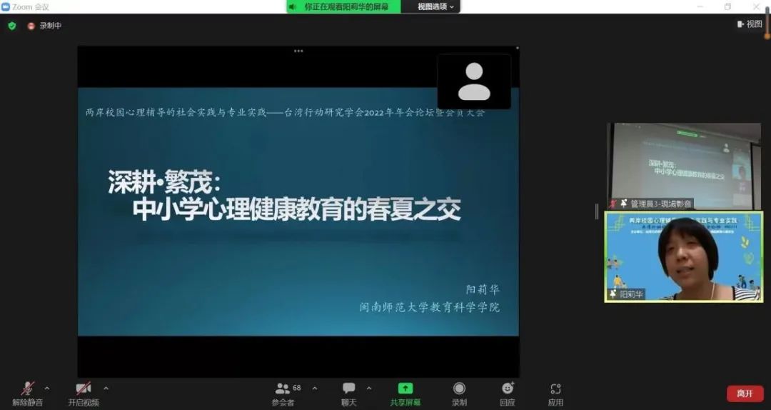 大会开幕式由台湾行动研究学会常务理事、宜兰佛光大学生命学研究中心教授兼中心主任林香君主持,yl23411永利教育科学学院院长陈顺森教授出席开幕式并致辞。陈顺森院长首先回顾了我校开展行动研究的历程:2015年在台湾辅仁大学社会科学院院长夏林清教授指导下,学院成立了“海峡两岸行动研究中心”,开设行动研究、质性研究方法等课程,逐渐形成覆盖教师、研究生和本科生的行动研究全员参与的新局面。2015年12月,我院主办了“海峡两岸乡村教育与行动研究”研习会;2018年12月,我院、福建省区域农村教师发展2011协同创新中心与台湾行动研究会共同主办了“第二届海峡两岸乡村教育与行动研究研讨会”。2020年12月5日,中国心理学会心理学质性研究专业委员会第三届学术会议暨第六届海峡两岸生命叙事与心理传记学研讨会在我校举办,其中“闽南师大行动研究与教育叙事研究”专题报告会上,夏林清教授、我校暴侠副教授、阳莉华、郭丹丹、孔凡芳等老师以及石狮市蚶江中心小学多位老师的报告,吸引了大批参会的学者、师生。目前学院正在紧锣密鼓地策划着“两岸乡村教师发展行动研究”丛书的出版。接下来,陈院长围绕国家级一流本科专业建设、课程体系构建、“双平台三场域四年不间断反思实践型心理教育人才”培养模式改革,对我校心理学专业在培养适应学校心理教育需求的人才的探索与实践进行了系统阐释。陈院长希望通过两岸同行间的相互参看、互学互鉴,为两岸校园心理辅导的繁荣兴盛,为心理教育人才培养方式的创新贡献一份力量。