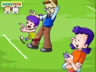 二人三足跑——游戏方法:在室内空地规定一个起点和终点,用一根长带子将爸爸和孩子相邻的一条腿绑在一起,父(母)子站在起点处,听到“开始”口令后,两人一起出发,到终点线后返回,用时短者获胜。游戏目标:两人相互配合学习用三条腿跑步,增进亲子情感的交流。投掷“保龄球”——游戏方法:将矿泉水瓶按1、2、3、4的数量分别排开成四排,在距离矿泉水瓶2-3米的地面上标一条起点线,将球放在起点上,提到“开始”口令后将皮球用力推向矿泉水瓶,击倒水瓶最多者获胜。游戏目标:提高身体的协调性,增强上下肢的力量,培养体育运动兴趣。反口令游戏——游戏方法:一人报口令,另一人做相反动作。比如报“向左”,孩子就做“向右”;报“向下”就向上跳跃,“向上”就蹲下。父母和孩子可以轮流体验报口令或做动作。可以适当加入拍手掌或举手来增加游戏难度。游戏目标:通过口令的转换,提高孩子的注意力,锻炼游戏者的反应能力。平地滑雪——家长和孩子一脚踩一块抹布,在脚不抬起来、不离开抹布的前提下滑动前进,看谁先到目的地。游戏目标:锻炼四肢协调,培养耐心。跳房子——游戏方法:在方格里按顺序写上数字;向方格内掷入沙包或石头等等;按数字顺序跳到指定方格,捡起它,再按原路跳回;在跳的过程中切记不可以踩到线,否则将退回起点重新开始。游戏既可以一个人玩,也可以和父母一起比赛。游戏目标:锻炼小朋友的协调、专注和思维能力。