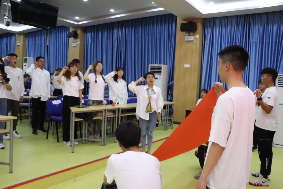 大会上,学院为新团员组织入团仪式,在院团委书记夏丽君老师的带领下,九位新团员们佩戴团徽,面向鲜红的团旗,整齐而洪亮地宣读入团誓词。朗朗宣誓声,莘莘赤子心,印证的是教科后浪们牢记嘱托跟党走,感恩奋进新征程的信心和决心。