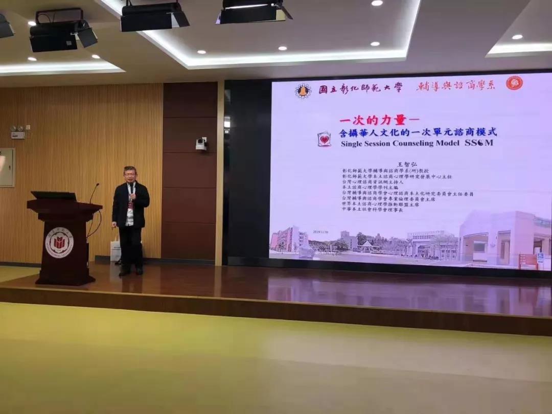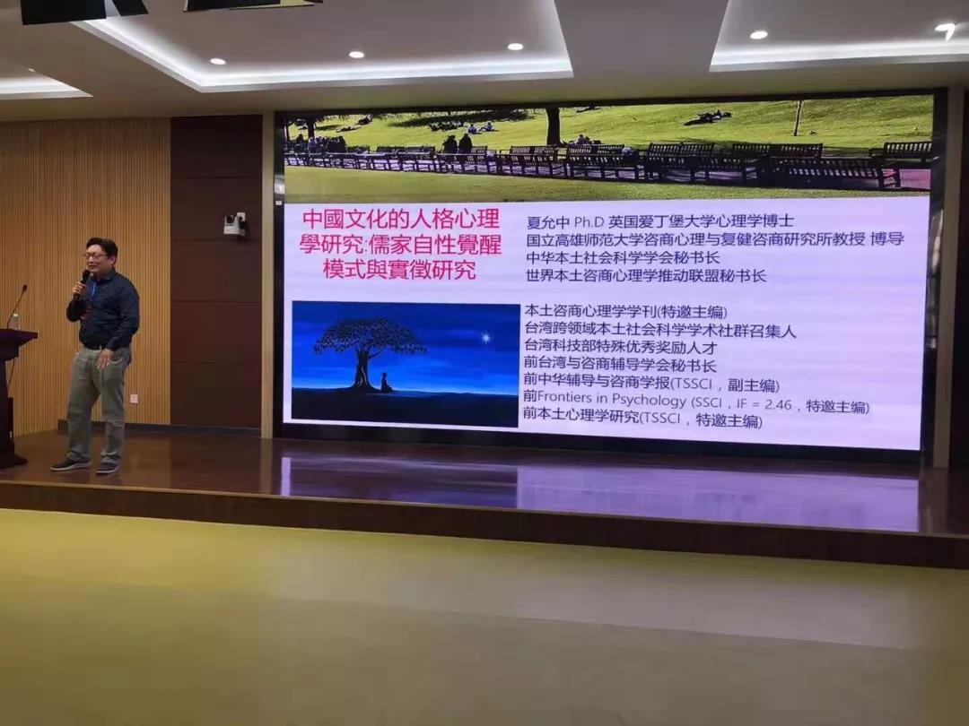 大会举办了三场专家学术报告会,彰化师范大学王智弘教授基于中国本土文化的极具实操性的《一次的力量:含摄华人文化的一次单元咨商模式》让参会者笑声不断;高雄师范大学夏允中教授《中国文化的人格心理学研究:儒家自性觉醒模式》带领与会者深思中国文化人格课题;教育部“长江学者奖励计划”青年学者、辽宁师范大学罗文波教授的《戒断期冰毒成瘾者的时间知觉研究》则展示了认知神经科学的严谨。