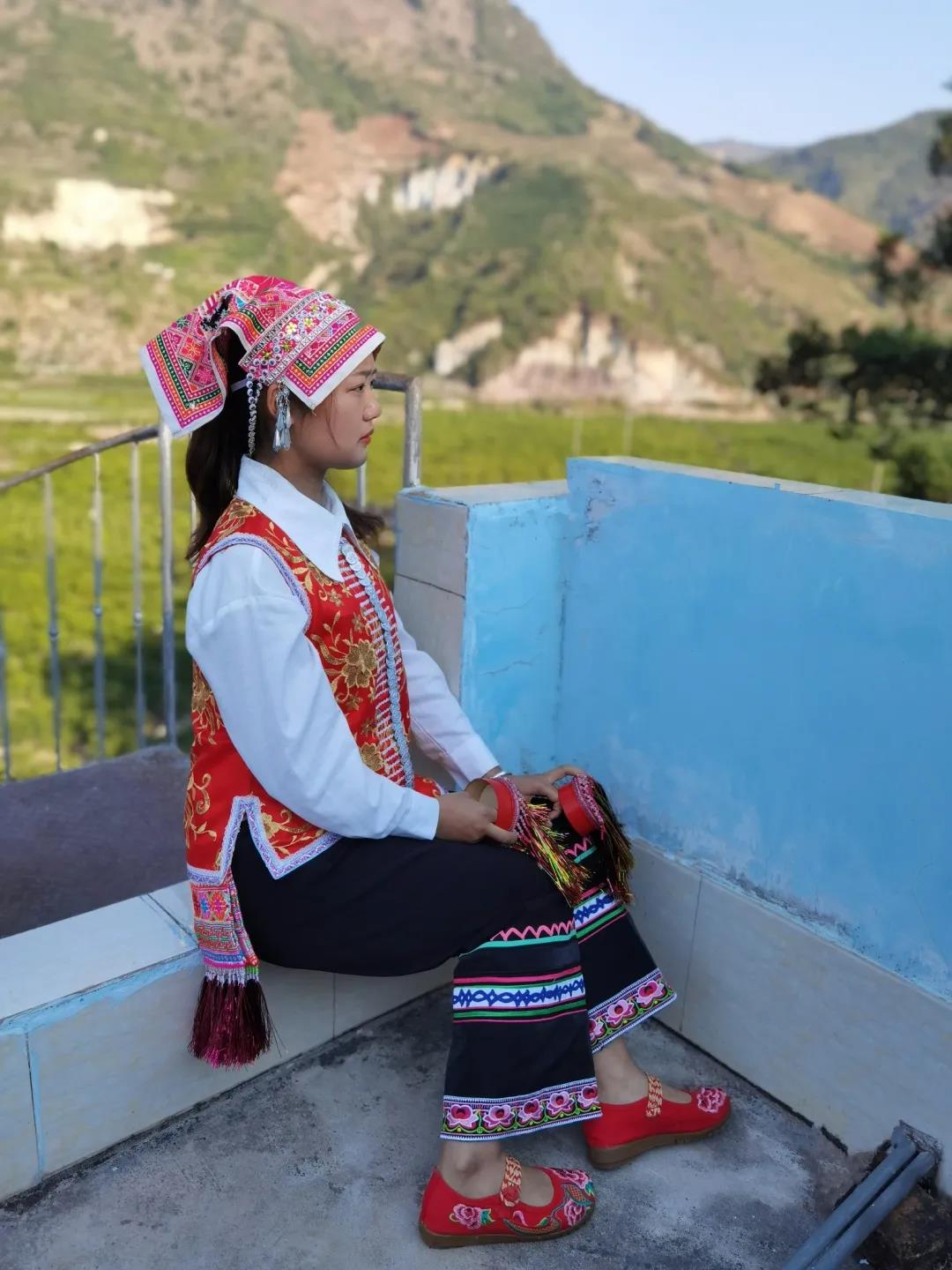 彝族文化。云南有26个民族,丰富的民族文化和独特的风俗使云南风情万种。我生活的玉溪,少数民族彝族占比最多,人们有着自己的生活习惯和民族装饰。作品中展现的是彝族人的表演服装,彝族民间有着各种各样的传统曲调,例如迎客调、娶亲调、哭丧等。彝族人能歌善舞,彝族舞蹈十分具有特色,例如跳乐、打歌舞等;动作欢快,节奏感强,彝族人用自己的方式表达着对美好生活的赞许,也寄托着对未来的期许。在我的作品中展示的服装由彝人自己制作,围腰(当地人们称为花系腰)上的一针一线都寄托着母亲对女儿的爱。在节庆日时一同穿上并聚集在一起唱歌跳舞,展示着年轻一代对自己民族文化的传承与热爱。